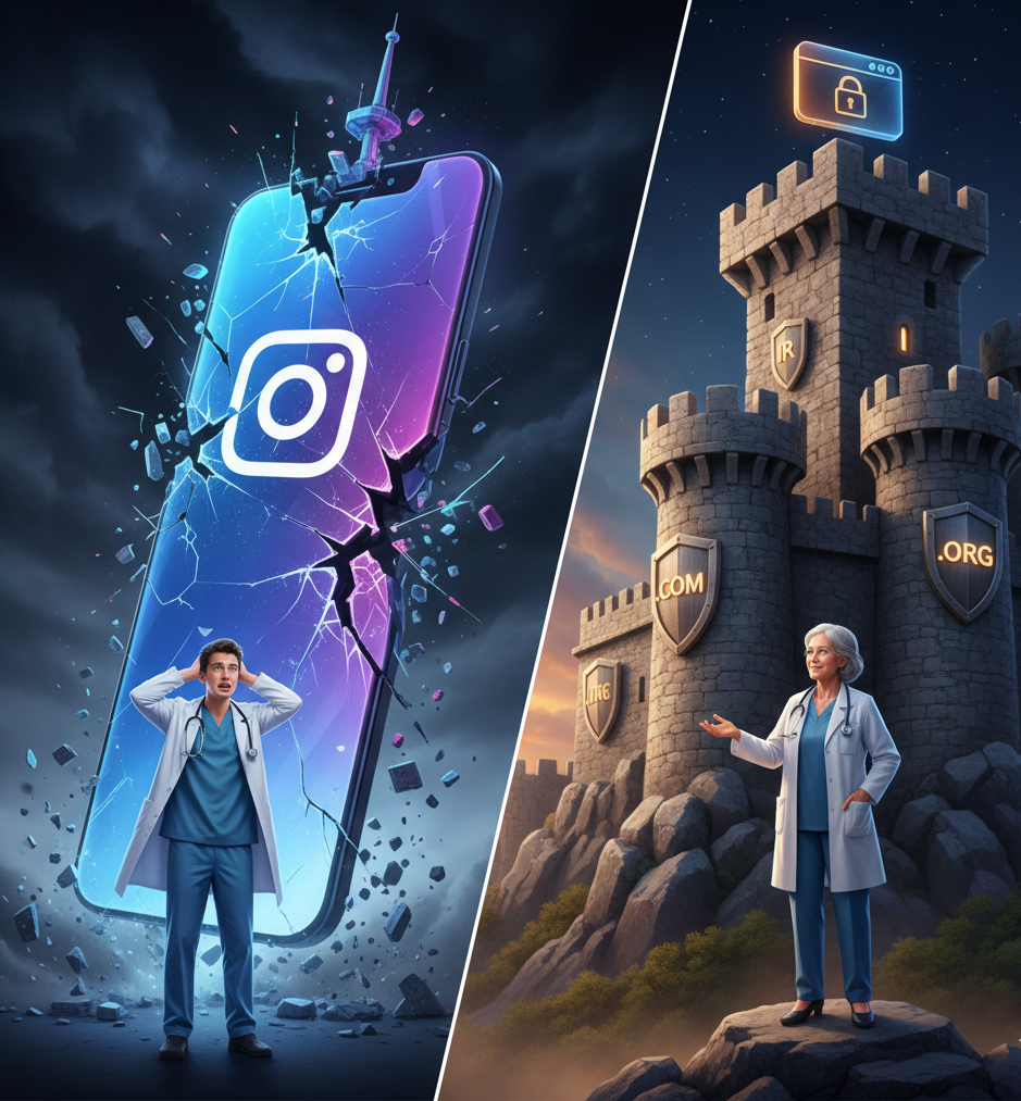 بسیاری از پزشکان تصور میکنند با داشتن چند ده هزار فالوور، فرآیند برندینگ پزشک را به اتمام رساندهاند. اما بیایید با هم صادق باشیم؛ اگر فردا صبح دسترسی به اینستاگرام محدود شود یا پیج شما به هر دلیلی (هک، ریپورت یا تغییر قوانین پلتفرم) از دسترس خارج شود، چه چیزی از برند شما باقی میماند؟ در چنین شرایط بحرانی، پزشکانی که روی برندینگ پزشک از طریق سایت سرمایهگذاری کردهاند، نه تنها متضرر نمیشوند، بلکه تمام مراجعین خود را به سمت پایگاه امن خود یعنی وبسایت هدایت میکنند.